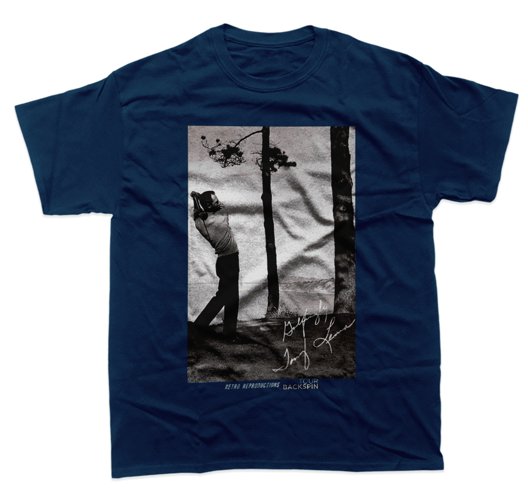 The Tony Lema Autograph T-Shirt features a historically accurate reproduction of the signed publicity photo that Tony Lema sent to fans who requested an autograph. The photo was taken at Lincoln Park Golf Course in San Francisco and features the Golden Gate bridge in the background. This relaxed fit, super soft t-shirt will become your go-to for relaxation or your workout. The printed inside collar label, not an embroidered label, provides a relaxed fit with no abrasion. Machine washable, cotton/poly blend.